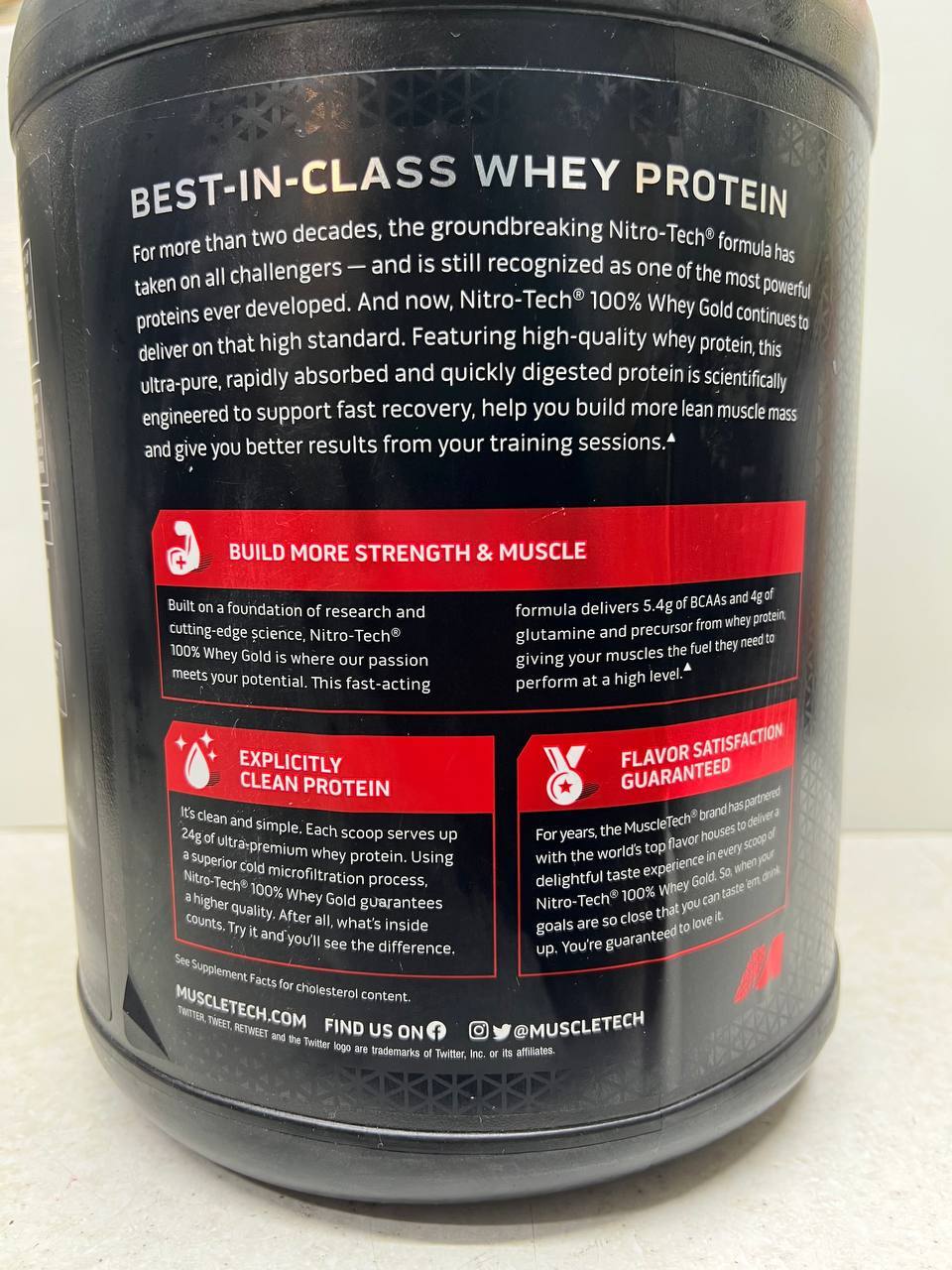 NITRO-TECH 100% Whey Gold یکی از محبوبترین و شناختهشدهترین مکملهای پروتئینی شرکت MuscleTech است. این محصول با هدف «حمایت از عضلهسازی، ریکاوری سریع و تأمین پروتئین با کیفیت بالا» طراحی شده است و ترکیبی از وی (Whey) کنسانتره، ایزوله و پپتید وی را به کار میگیرد تا پروتئینی با جذب سریع و کیفیت بالا ارائه دهد.